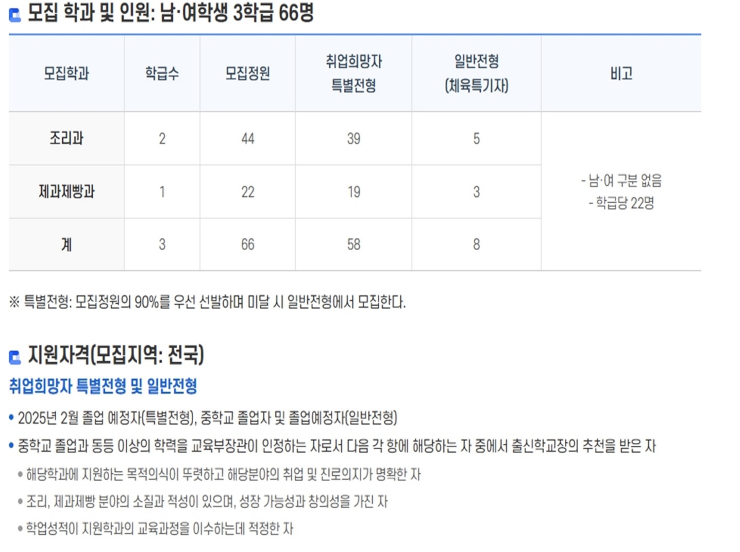 ✔ 취업희망자 특별전형(정원 90%, 약 58명)