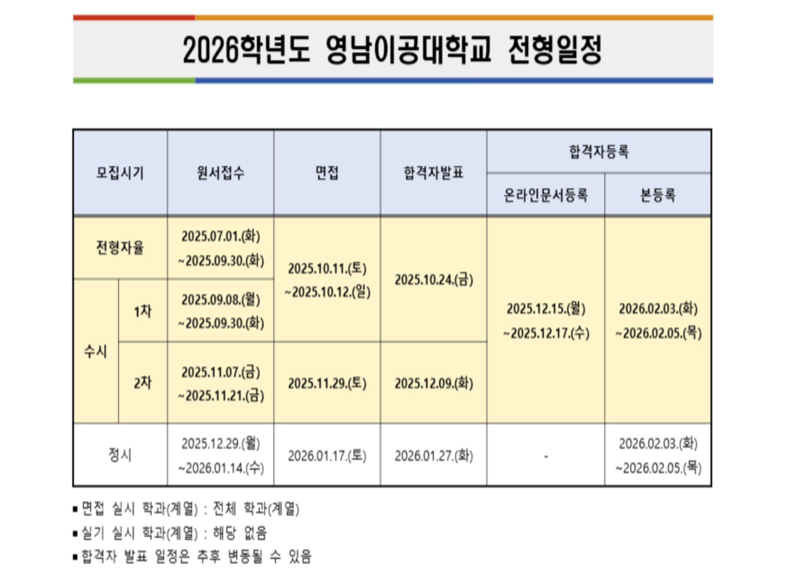 ◾ 면접 100%(단, 학과별 모집 인원 확인 필수)